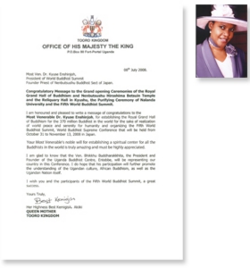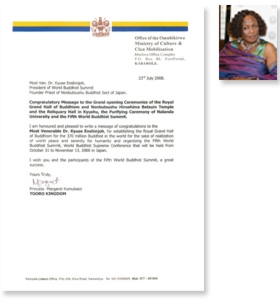 ◇ 行 事 報 告 九州本山 舎利殿 落慶法要 世界各国から九州本山 舎利殿 落慶に169通の祝辞が寄せられました各国の王室、 国家元首、政府要人から 寄せられた主な祝辞を御紹介させて頂きます。 ウガンダ トロ王国 ベスト・ケミギサ・アキイキ皇太后陛下 ウガンダ トロ王国 マーガレット・コムバイズル王女殿下 舎利殿落慶 祝辞11 12345678910111213141516171819 舎利殿落慶 祝辞13 行 事 報 告 九州本山 落慶法要 カンボジア国王 御参詣 舎利殿 落慶法要 ◯ 式 典 ◯ 各国祝辞